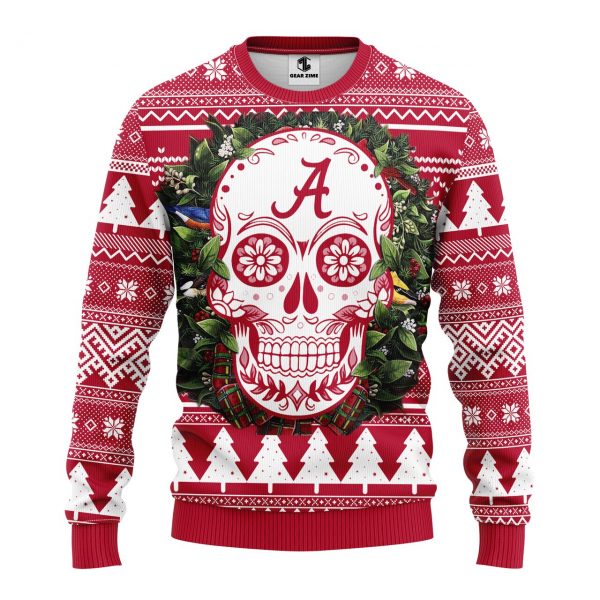 NCAA Alabama Crimson Tide Skull Flower Ugly Christmas Fleece Sweater