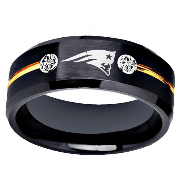 New England Patriots Ring – Golden Groove Design with Stone Accents (Full box ring)