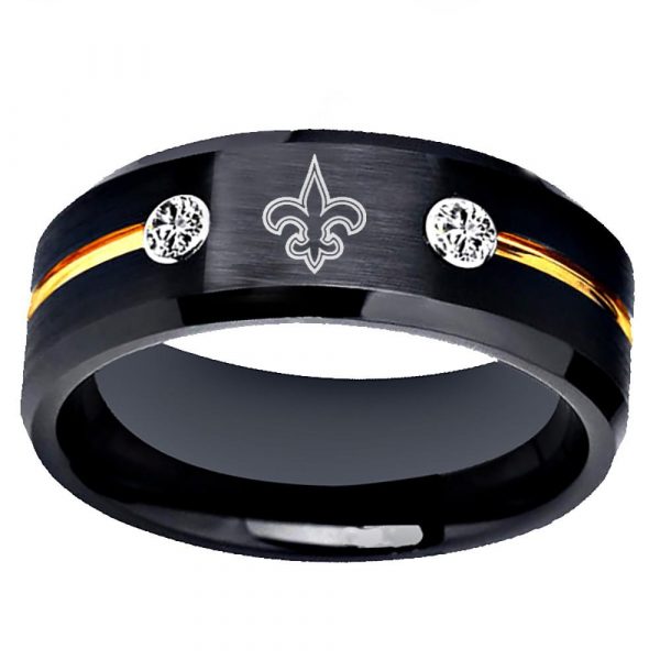 New Orleans Saints Ring – Golden Groove Design with Stone Accents (Full box ring)
