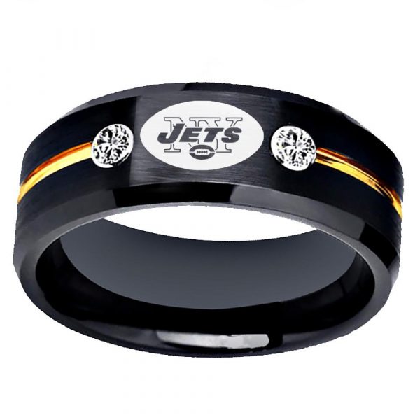 New York Jets Ring – Golden Groove Design with Stone Accents (Full box ring)