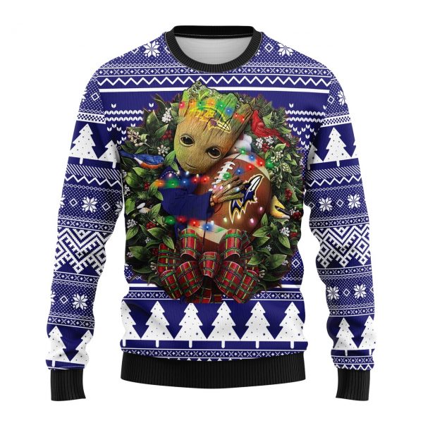NFL Baltimore Ravens Groot Hug Ugly Christmas Fleece Sweater