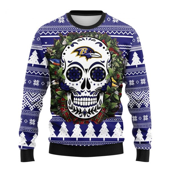 NFL Baltimore Ravens Skull Flower Ugly Christmas Fleece Sweater