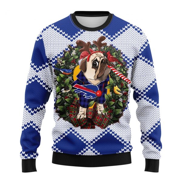 NFL Buffalo Bills Pug Dog Ugly Christmas Fleece Sweater