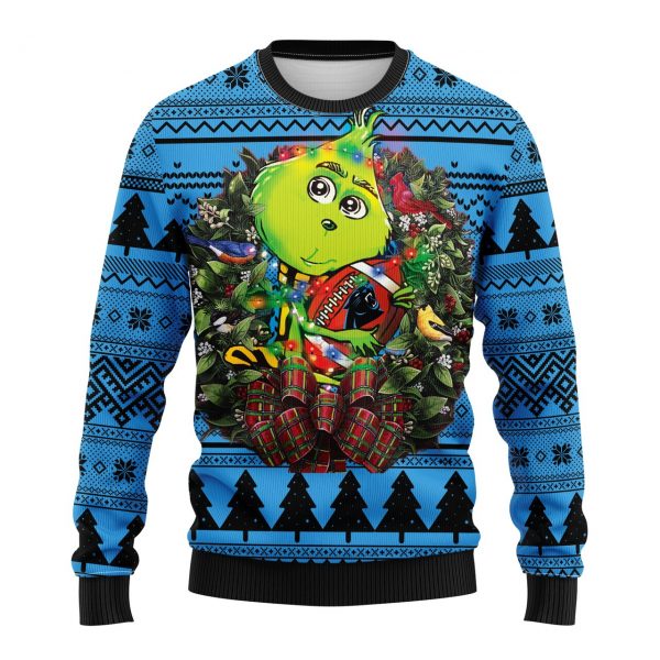 NFL Carolina Panthers Grinch Hug Ugly Christmas Fleece Sweater