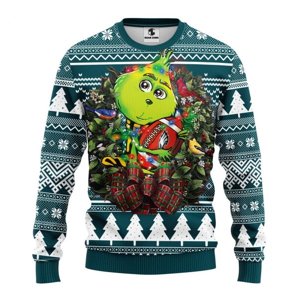 NFL Philadelphia Eagles Grinch Hug Ugly Christmas Fleece Sweater