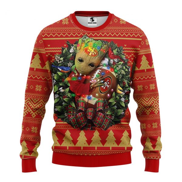 NFL San Francisco 49ers Groot Hug Ugly Christmas Fleece Sweater