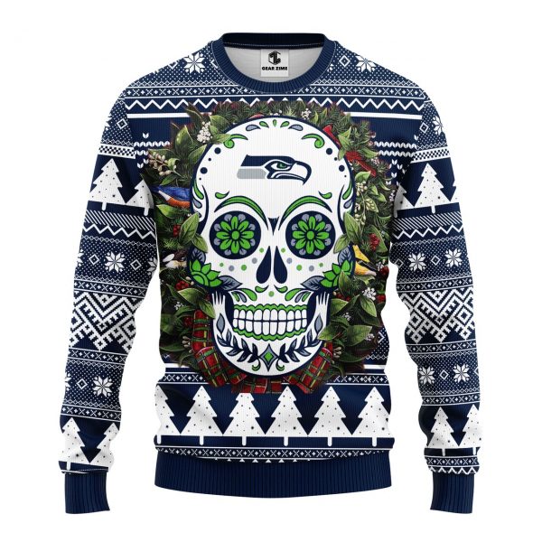 NFL Seattle Seahawks Skull Flower Ugly Christmas Fleece Sweater