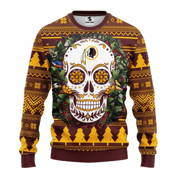 NFL Washington Redskins Skull Flower Ugly Christmas Fleece Sweater