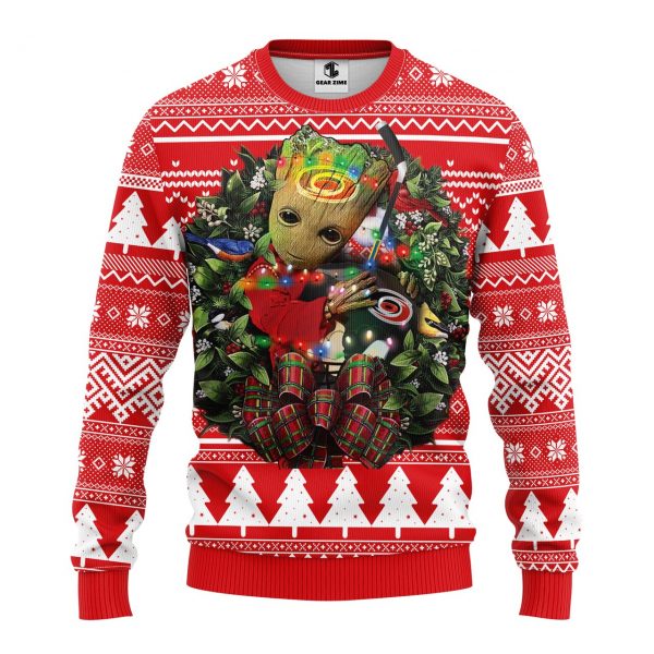 NHL Carolina Hurricanes Groot Hug Ugly Christmas Fleece Sweater