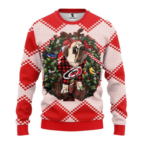 NHL Carolina Hurricanes Pug Dog Ugly Christmas Fleece Sweater