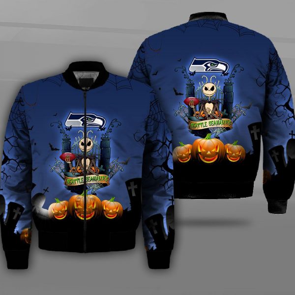 Seattle Seahawks The Nightmare Before Christmas Jack Skellington Bomber Jacket, NFL Seattle Seahawks Apparel